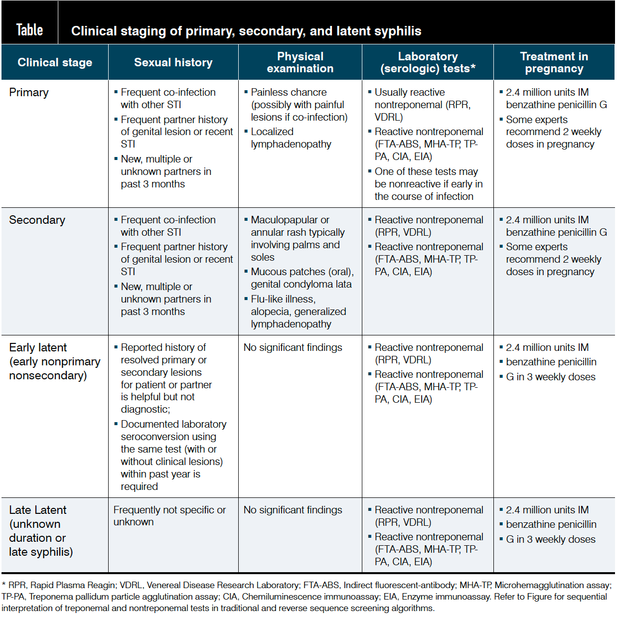 The recommended treatment at all stages of this disease is the antibiotic penicillin. Lets break it down. 1 Get tested for gonorrhea and chlamydia before you treat yourself.