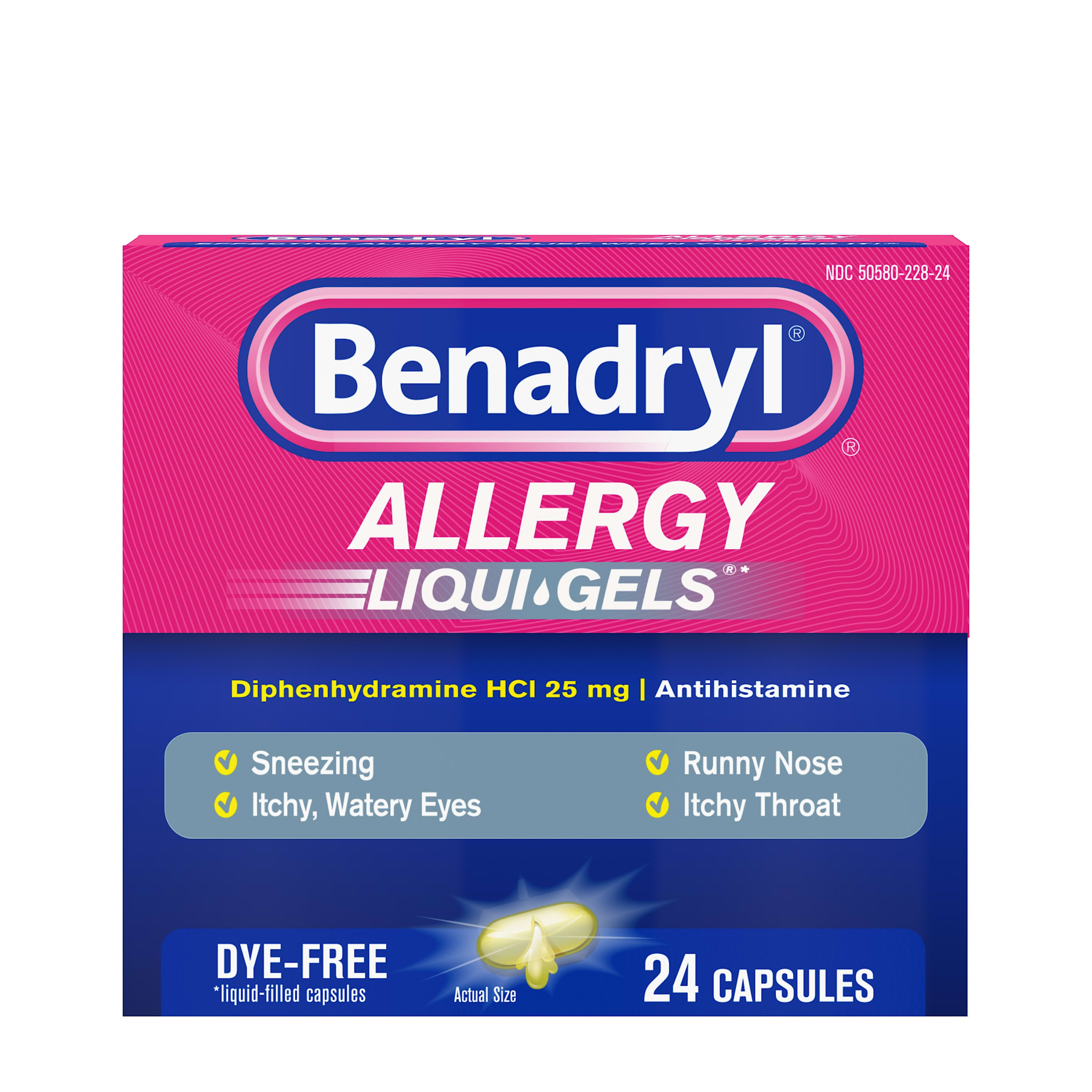 Benadryl Liqui Gels Antihistamine Allergy Medicine Dye Free 24 Ct Walmart Com Walmart Com